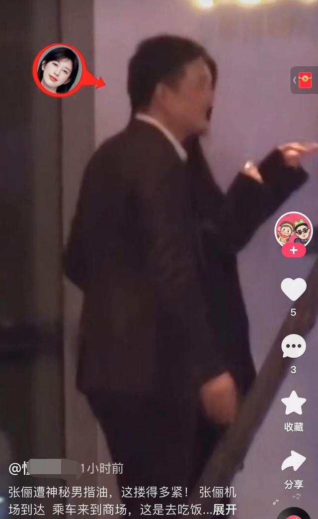 两人走路时,该男子面带笑意,热情地搂着张俪的腰,举止十分亲密,他自然的举动仿佛并不觉得有什么不妥。反观张俪,似乎有些不知所措,她全程将手臂上抬张开,模样抗拒,像是在挣脱一般。