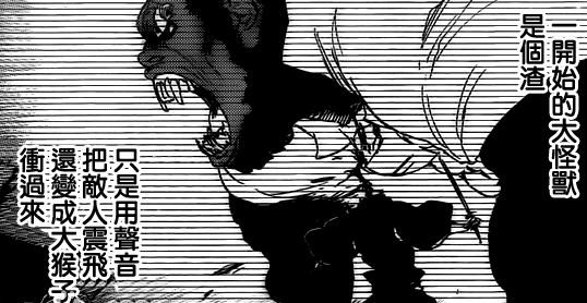 R:杰洛姆·基兹巴特。能力:咆哮。能力是可变身成猩猩,并用咆哮的声音将敌人震飞。没有展现过完圣体。在漫画503话与十一番队队长更木剑八展开战斗,被剑八劈成了两半。
