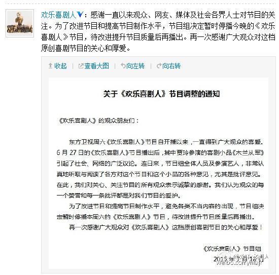 有网站曾就此发布了一项调查,在近七万网友参与的民调中,绝大部分网友认为《木兰从军》只是一则小品,不必小题大做。