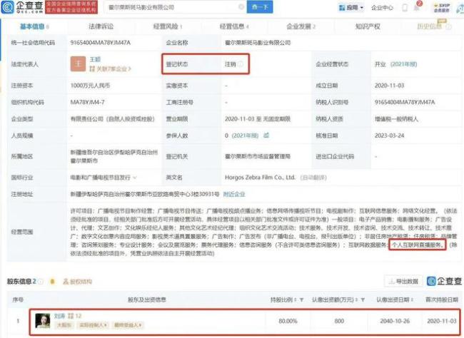 刘涛持股直播公司已注销 刘一刀直播账号已停更