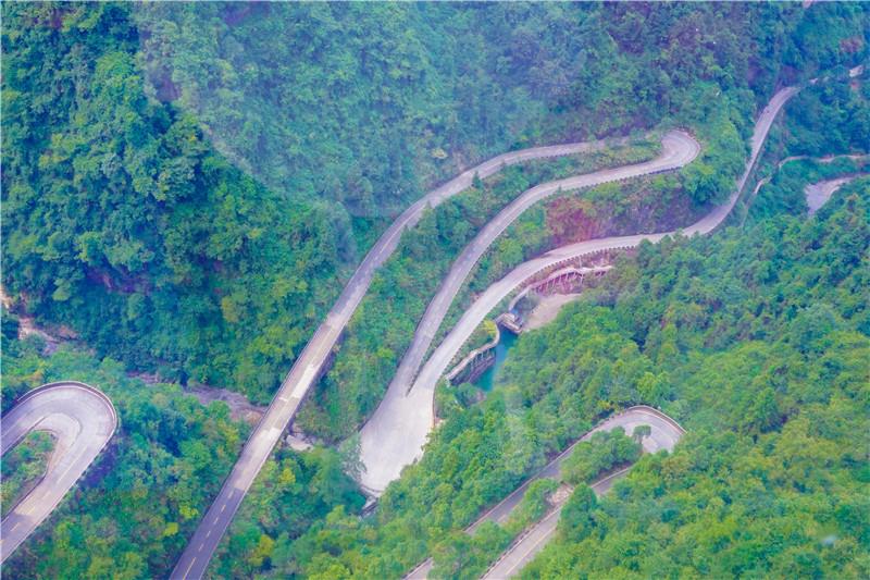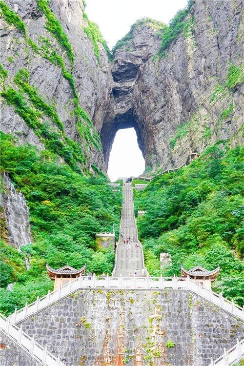 天门山,天门山文化底蕴深厚,被尊为“张家界之魂”、“湘西第一神山”。吸引了来自全国各地的游客前来观光旅游,天门山景区游人如织,游客们乘坐天门山观光索道俯瞰蜿蜒盘旋的盘山公路,爬天梯赏天门洞奇观。IC photo(未经授权,请勿转载)