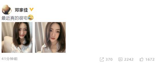 网易娱乐3月20日报道3月20日下午,邓家佳在微博晒出两张自拍照,照片中邓家佳坐在沙发上对镜甜笑,头发中分,下巴很尖,眼睛巨大,仿佛网红脸,与以前大有不同。
