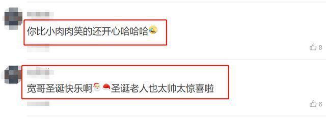 看到这网友纷纷在下方留言,有网友评论祝福"宽哥圣诞快乐,圣诞老人也太帅太惊喜啦",还有网友表示"你比小肉肉笑的还开心"。