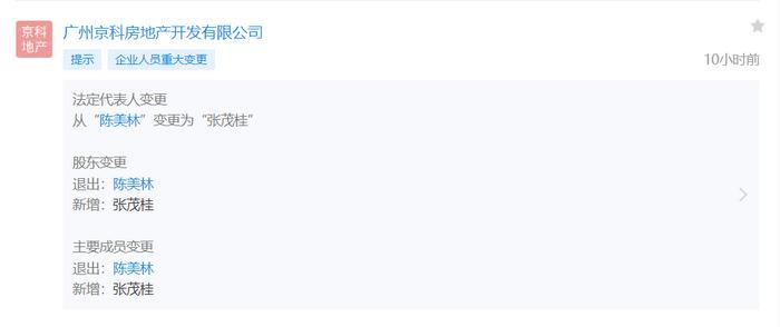 陈美林退任广州京科房地产执行董事兼总经理