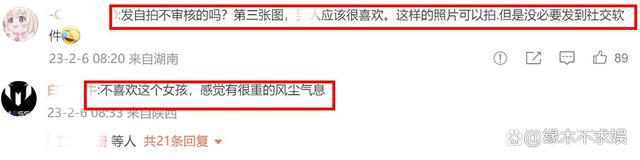 有网友质问黄多多:" 发自拍不审核的吗?第三张图有人应该很喜欢 ",并表示这样的照片可以拍,但是没必要发到社交软件。还有人直言:" 不喜欢这个女孩,感觉有很重的风尘气息 "。