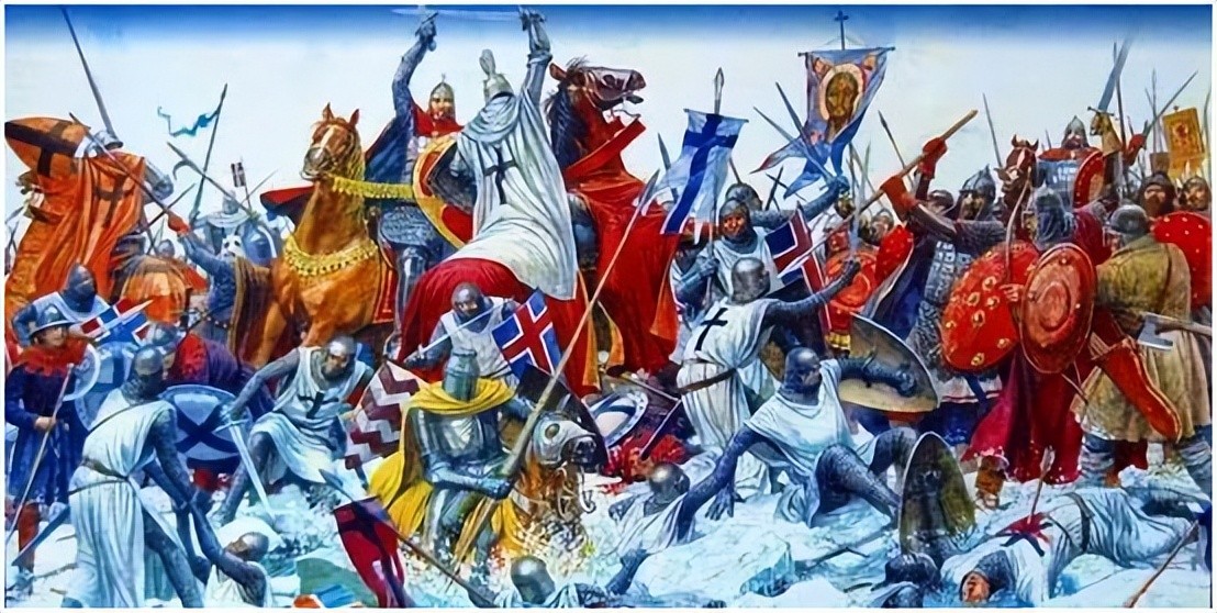 条顿骑士团的下一个对手是诺夫哥罗德公国(准确来说应称之为共和国),是罗斯诸公国之一,12世纪,曾经强大的基辅罗斯分裂为若干公国,诺夫哥罗德便是其中之一,诺夫哥罗德城在882年迁都基辅城之前是基辅最初的首都。1136年,因为战争的失利,城内爆发了市民针对亲王弗谢沃洛德·姆斯季斯拉维奇(VsevolodMstislavich[1])的叛乱,并驱逐了亲王。此后诺夫哥罗德建立了独特的政治体制,建立共和国,并以“波维尔共和国”或者“商业共和国”而闻名——共和国由市民议会控制,但军队和国防则授权给封建贵族。之后诺夫哥罗德不断向北方和东方扩展领土,并依靠商业和贸易迅速发展。成为罗斯诸公国中最为富裕的。罗斯人一向敌视日耳曼殖民者,多次支持立陶宛,爱沙尼亚等抵抗条顿骑士团的进攻,因此也成为条顿骑士团扩张的目标之一。。1240—1242年,德意志十字军骑士及丹麦和瑞典的封建主乘罗斯各国抗击蒙古军队而遭到削弱之机,加紧侵略罗斯西北部的领土。1240年,条顿骑士团夺占普斯科夫。向诺夫哥罗德进军。次年,诺夫哥罗德大公亚历山大·涅夫斯基率军抵抗,著名的冰湖之战爆发。