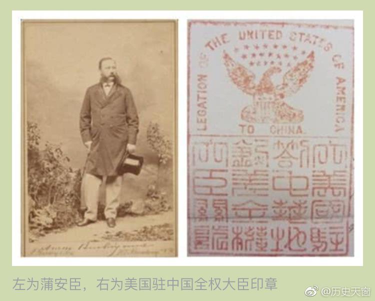 大清国第一支外交使团1868年2月25日,“龙抬头”的第二天,在原美国驻华公使蒲安臣(Anson Burlingame)的带领下,大清国第一支外交使团从上海虹口码头登船出发。蒲安臣,1861年被林肯任命为驻华公使,到北京后积极执行“合作政策”,与总理衙门大臣合作愉快。他还让丁韪良(W. A. P. Martin)翻译惠顿的国际法著作——《万国公法》给清政府使用,清政府用这部书获得了一些外交胜利,交情因此加深。1867年,蒲安臣任满即将回国。在奕为他举行的离别晚宴上,文祥提议他代表中国出访列强。蒲安臣自称以为这个提议只是句玩笑话。但是第二天蒲安臣就被告知清政府是认真的,请他展期离开。最后双方达成共识,清政府聘蒲安臣为“办理各国中外交涉事务大臣”。今人或许认为请一个外国人做主使是一件很丢脸的事情,为什么高傲的慈禧太后就同意了?事实上,总理衙门已经准备好了理由:“向来西洋各国,互相遣使驻扎,不尽本国之人,但使诚信相孚,原无分乎区域。”赫德带领斌椿等人游历欧洲成为这些大臣的举例。当然,即便关系如此,制约之法仍然必要。“凡于中国有损之事,令其力为争阻;凡于中国有益之事,令其不遽应允,必须知会臣衙门复准,方能照行。在彼无可擅之权,在我有可收之益。倘不能见效,即令辞归。”
