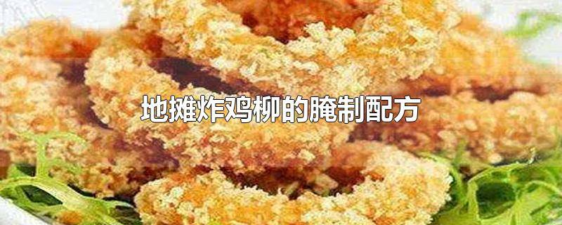 地摊炸鸡柳常见的腌制配方有:鸡脯肉、酱油、食用油、食盐、白酒、生姜粉等,鸡脯肉需要切成小指粗的细条形,把配料放进去后需要抓均匀,并腌制20分钟左右。