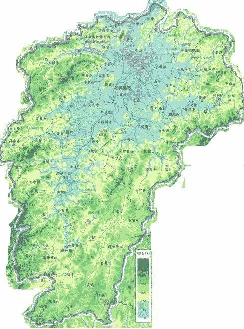 可以看出,南昌市处于江西省鄱阳湖平原的中心腹地位置,地理位置优越而且正好处于全省交通的交汇处。江西省除了鄱阳湖平原,其他地方大都以丘陵地带为主,只有沿河一带才有少许平原展开,不利于城市的扩建,极大的限制了工农业的发展。而南昌地处鄱阳湖平原中央地带,土地肥沃平原面积广大,把省会建设在这里更有利于特大城市的建设与发展,得地理之便。江西省其他城市,诸如九江、上饶、宜春、萍乡、抚州、赣州、吉安、新余这几个城市,不但不处于中心地带,要么地区偏远,要么境内多山,开发潜力小,也不利于城市建设以及大规模扩建。