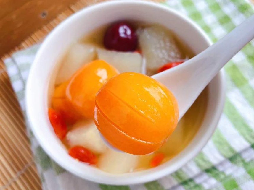 5、煮至枇杷变软,熄火。盛出,趁热食用。