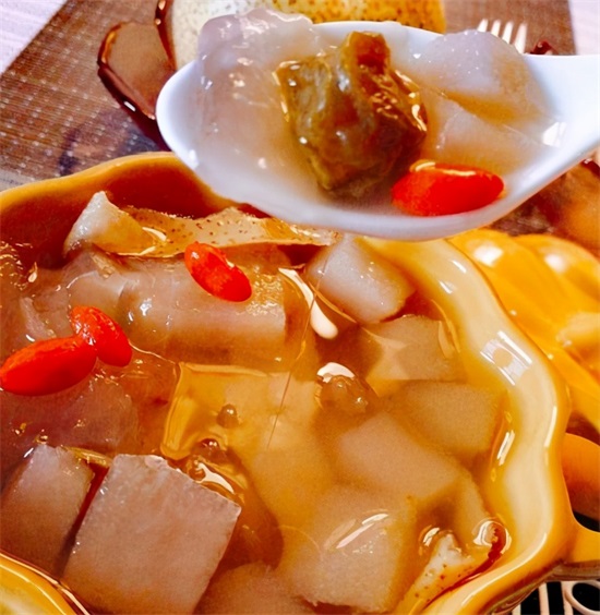 雪梨汤,清甜滋润、不油腻,适合干燥的冬季饮用,可以达到润泽肌肤、止咳化痰、润肺的效果。