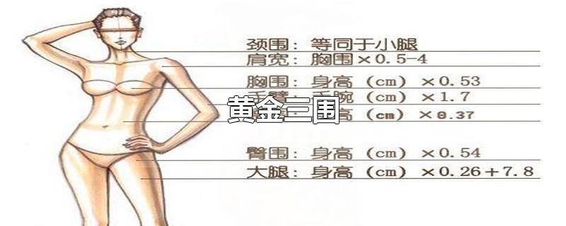 黄金身材三围尺寸分别是胸围84厘米、腰围61厘米、臀围90厘米。标准身材取决于胸部、腰部、臀部的比例以及高度。以身体中心画一条直线,分别以胸部和臀部为顶点造出两个三角形,三角形前后和上下的比例都均等,交叉点正好位于腰部则可称为理想的体形。