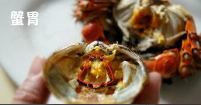小贴士:蟹盖中的黑色蟹衣对于体寒者不要食用。