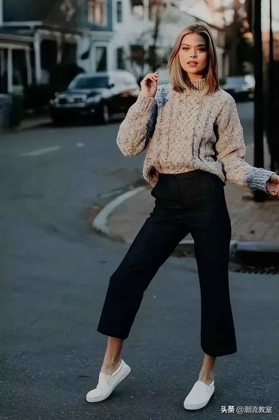 宽松的针织衫:选择一款宽松的针织衫,可以让夏日的喇叭裤搭配更为舒适和随性。喇叭裤本身就是一种非常舒适的裤子,搭配上一件宽松的针织衫,整个造型看起来非常随意,但是又不失时尚感。