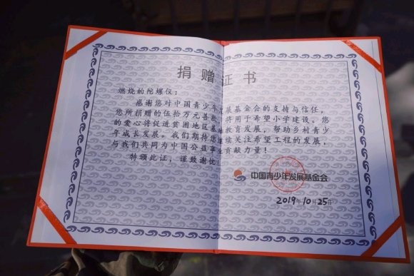 这一天他的母校北航校庆,他也去到云南芒市的一所希望小学,捐资50万给贫困学生建楼。