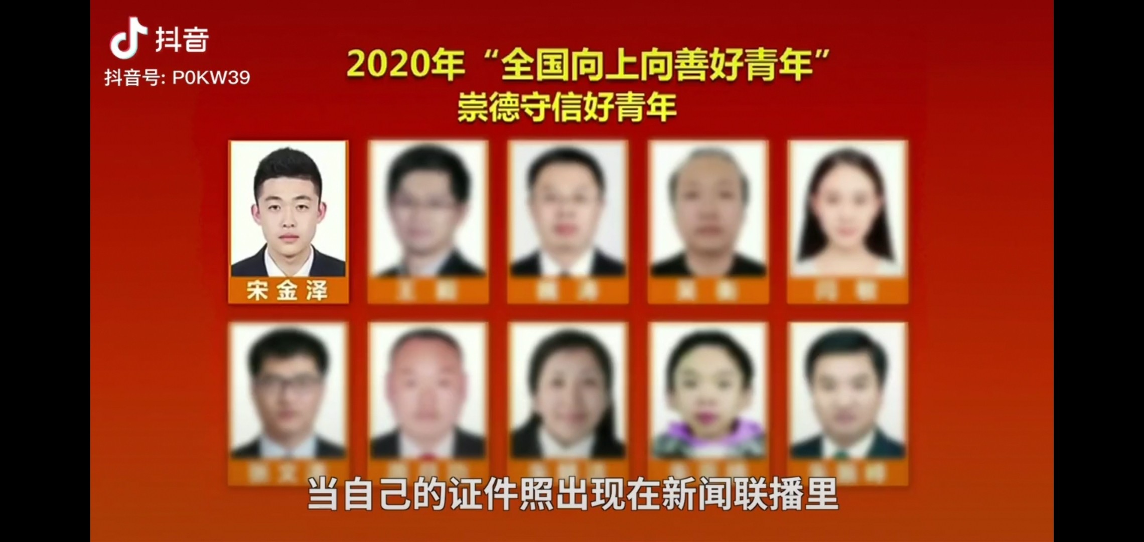 在昨天的新闻联播中,有一条新闻:2020年“全国向上向善好青年”崇德守信好青年。