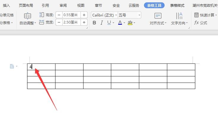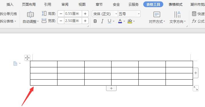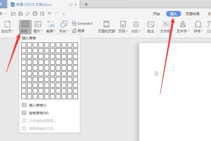 2、在“表格”中选择需要的行和列,并点击,即可看到文档中插入了表格;