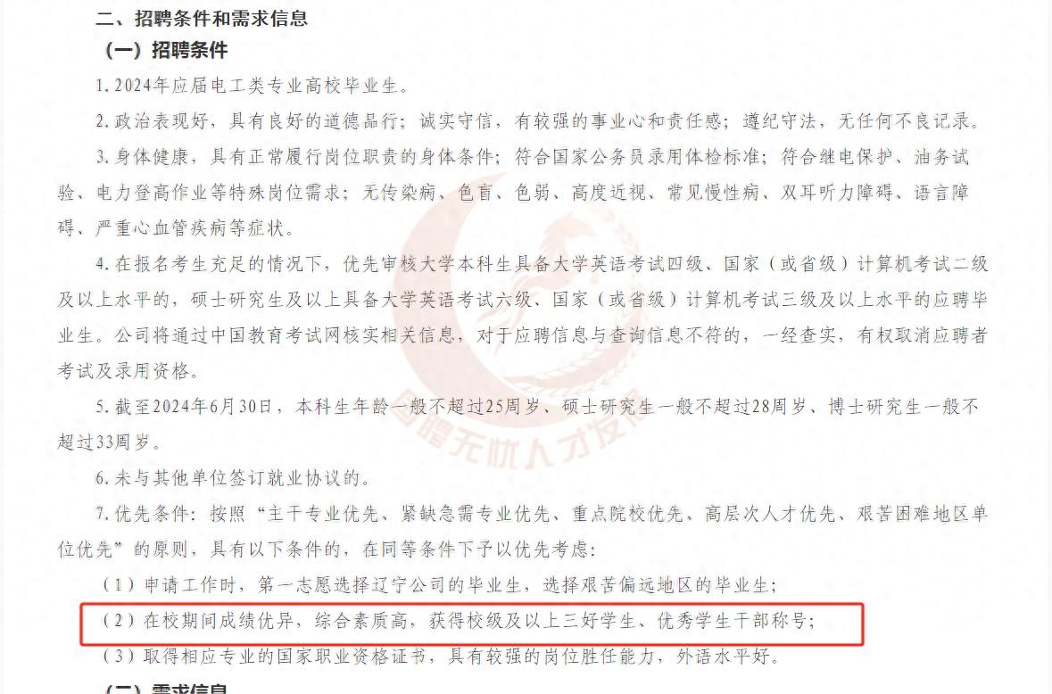 但是要注意,黑龙江挂科网申不可过,另外网申时需上传成绩单,而一些省公司也表明,在校成绩优异的考生会被优先考虑,因此挂科一定程度上会受到“同等条件择优通过”的影响。