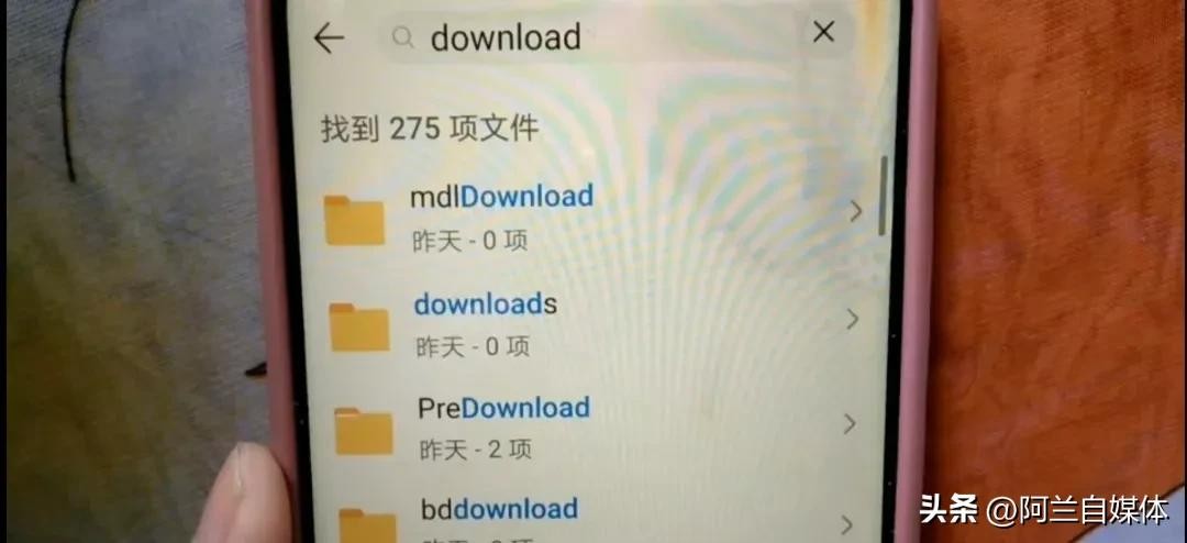 然后我们再输入download,然后输入之后看下方这里也出现了二百多项的文件。我们点全选点下方的“删除”,立马腾出更多的内存空间了。这是手机里面的下载文件,下载完了就可以删除了。