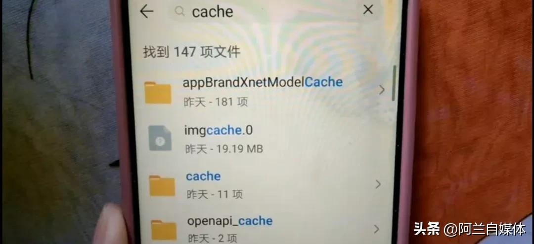 然后我们再输入cache ,立刻下方也就出来了,这是手机在运行过程中产生的一些临时缓存文件,也是没用了。我们点下方的删除,也要把它全部删除了。