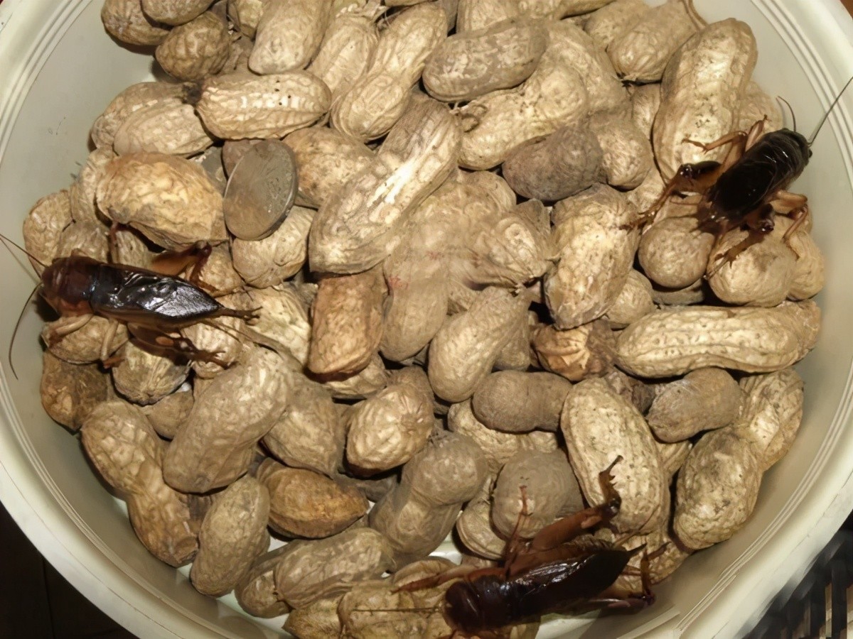 人工蓄养花生大蟋必须遵循它的自然习性,虫具选择应以宽敞些为原则,体积较大的瓦盆或透明的塑料质、有机玻璃质的长方形盒箱内是不错的选择;而养在蛐蛐罐、盆中则很少会叫,一是因为空间较小,二来无法做到穴深而居。有网友用大号龟盒铺设十厘米深的椰土后蓄养,里面再放置些树皮等作为掩体,方便它攀爬、隐藏。花生大蟋食性较杂、食量较大,豆类、米饭、蔬菜、水果都可作为它的食料。最重要的是千万不能缺水,可用一个小盆盛点水放在虫具中,供其饮用。(图片转载自网络,作者@雅鸣)