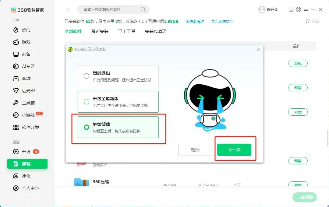360安全卫士卸载步骤详解4