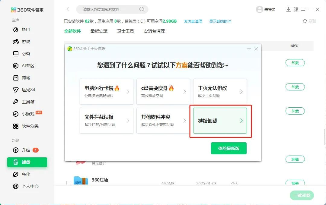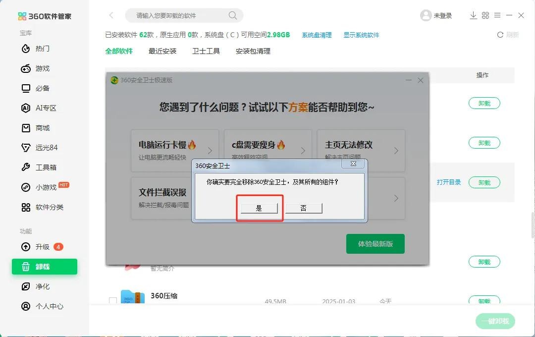 360安全卫士卸载步骤详解