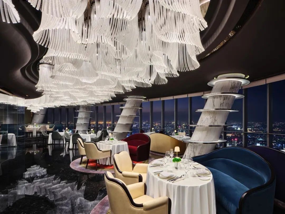 落座于此的宾客不仅可以享受江南菜系的丰盛美味,还可将整个上海市的美景尽收眼底。