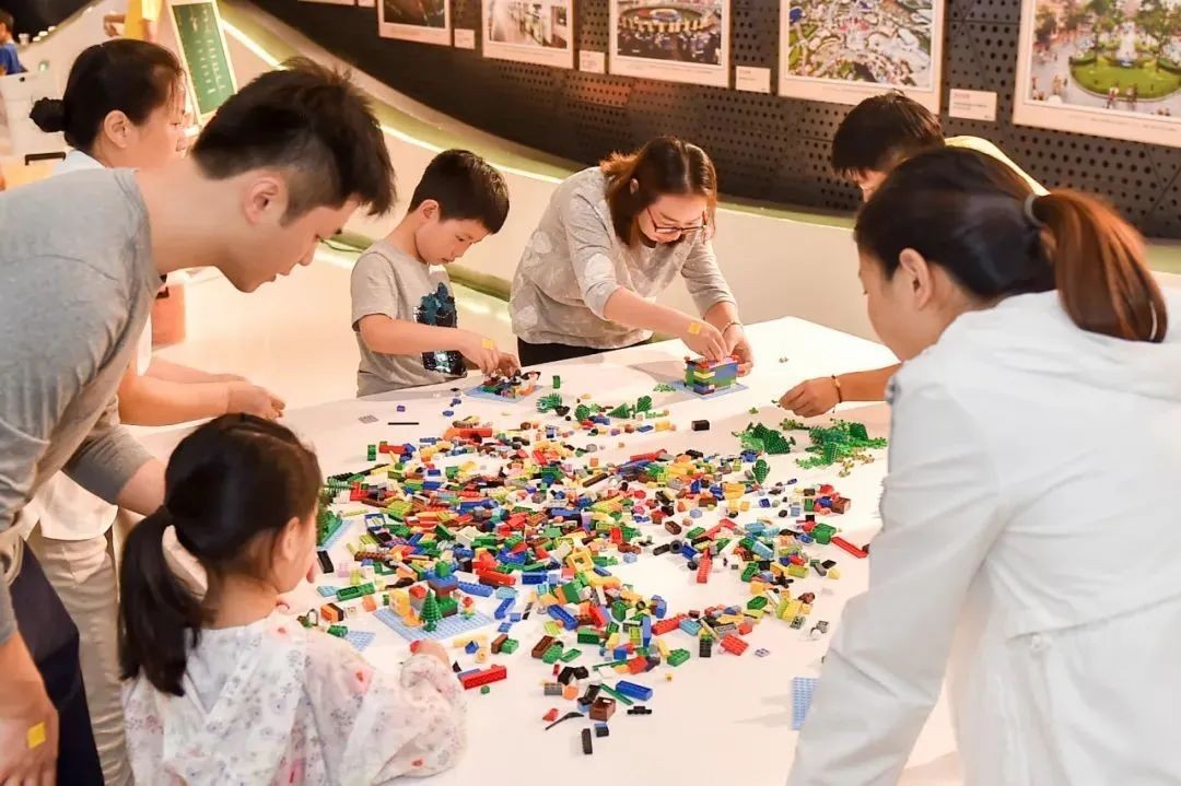 同年9月21日-22日,1025名参与者在这里共同接力,用乐高积木搭建起了一座壮观的“垂直城市”,成功创造了8小时内最多人参与搭建乐高微观城市的世界纪录。