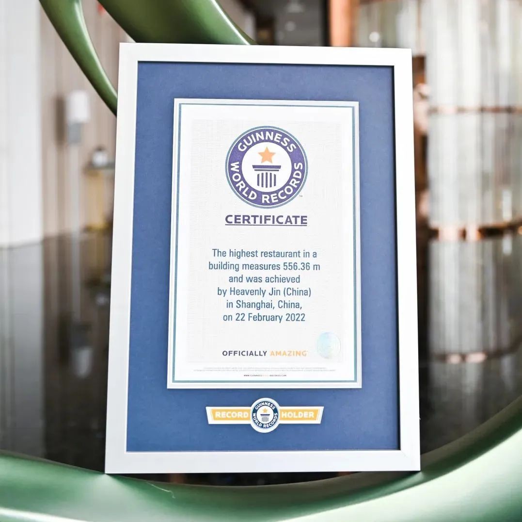 “天之锦餐厅”以距离地面556.36米的高度,打破了原纪录保持者在2011年创造的441.3米的纪录。