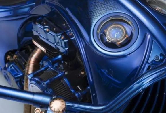 这台摩托车的价格高达188万,车身上还镶嵌着一个5.4克拉的钻表,