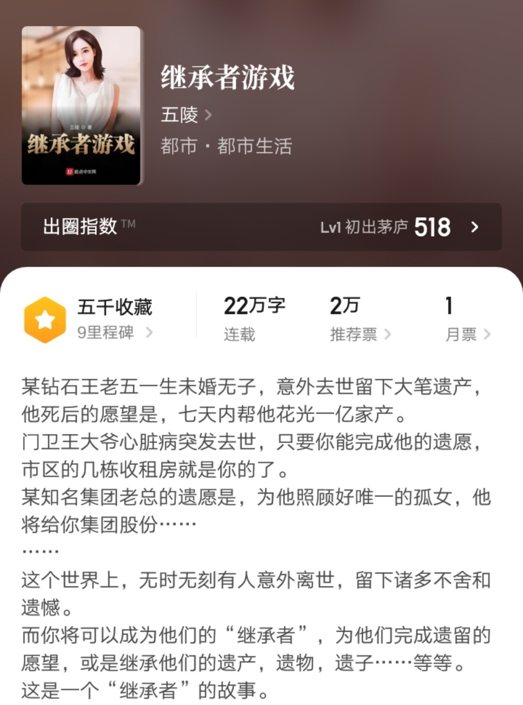 因为九月中旬五陵新书《继承者游戏》上架,首订并不算好,他没更新几天,就断更了。直到现在都还没有恢复更新,我以为他又要太监跑路重开新书了。