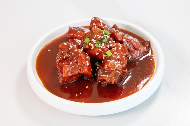 糖醋排骨是淮扬菜中的一道传统名菜,以猪排骨为主要原料,经过炸制和糖醋汁烹制而成。这道菜品色泽红亮、口感酸甜适中,是一道色香味俱佳的代表性菜品。