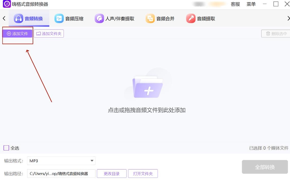 步骤1,打开嗨格式音频转换器,点击“添加文件”导入flac音频。