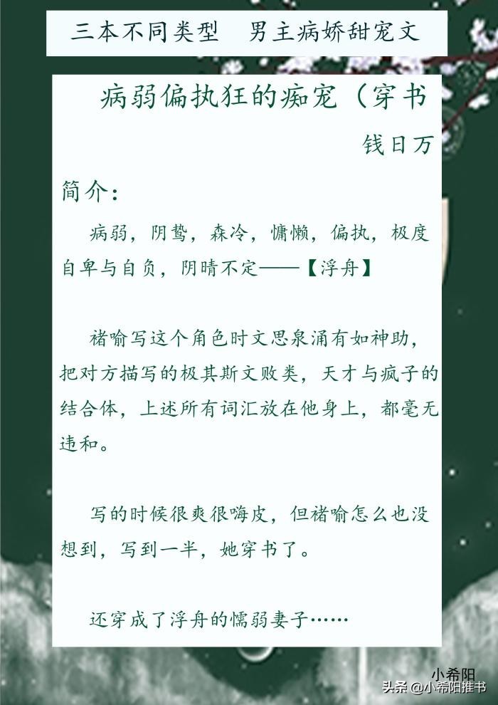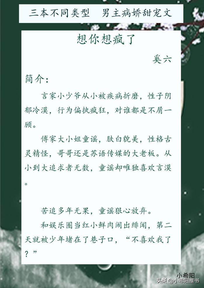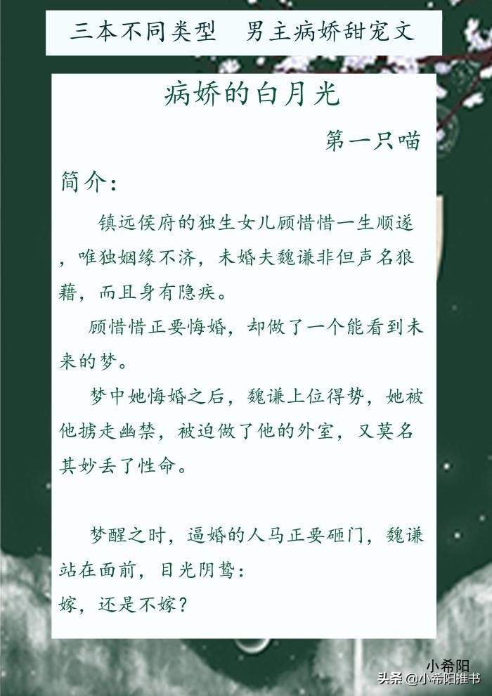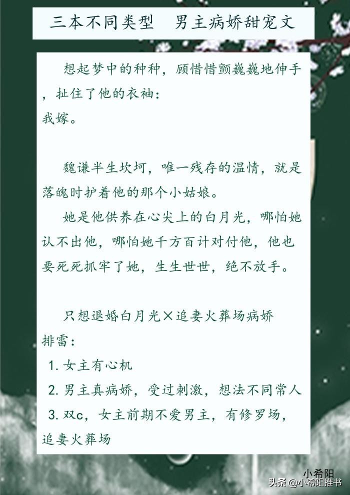今天推荐三本不同类型的男主病娇甜甜文,男主都很病娇偏执,有点病态,不过很宠很宠女主。