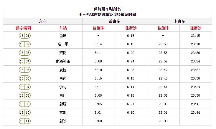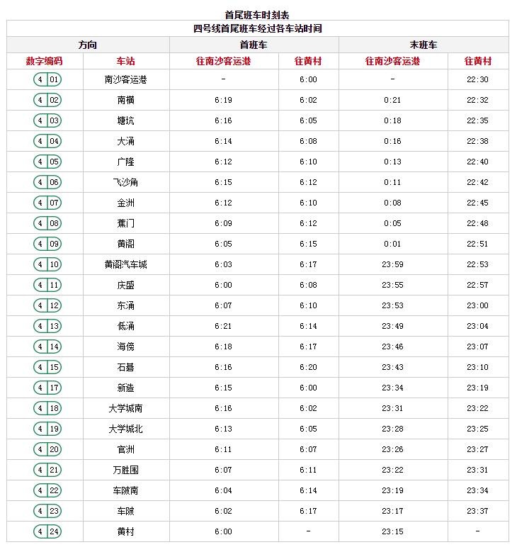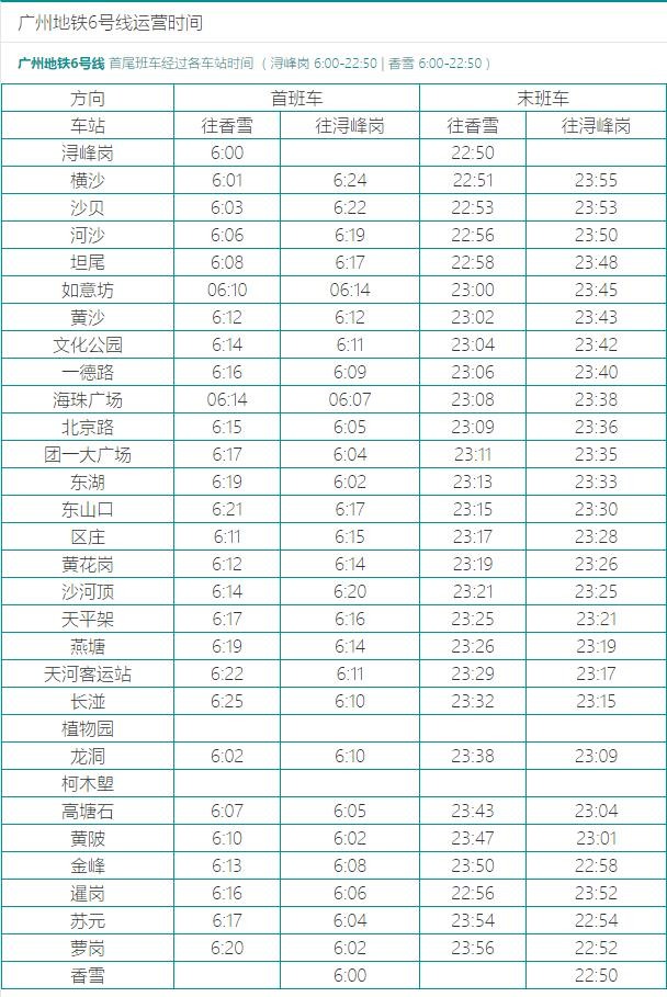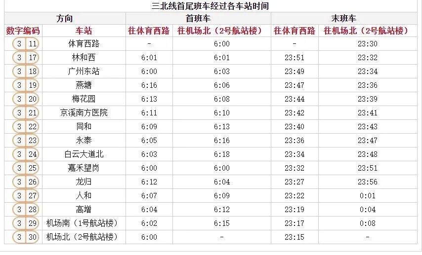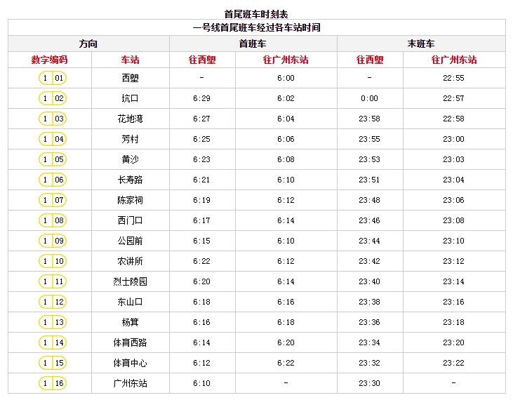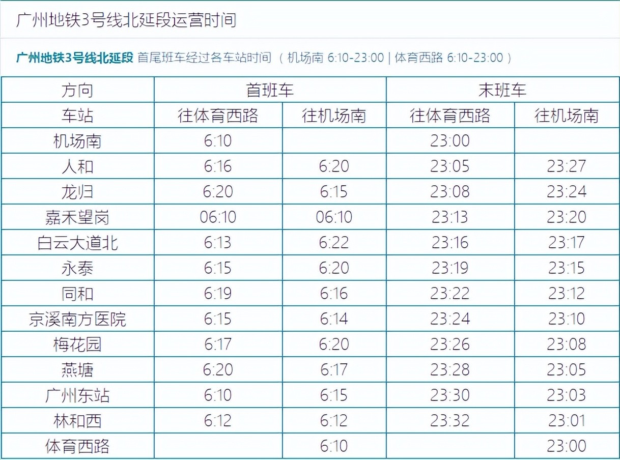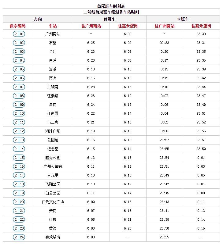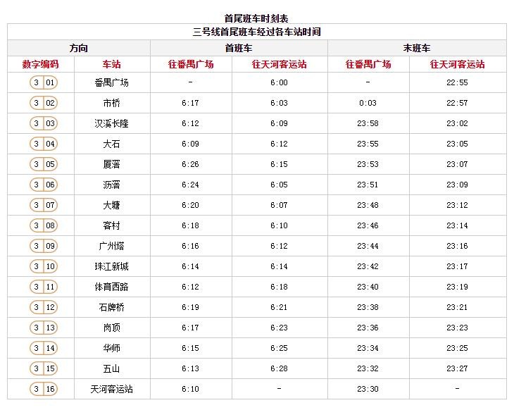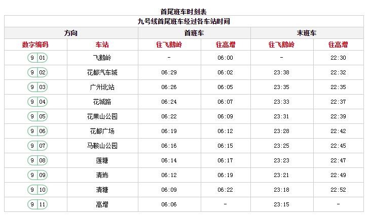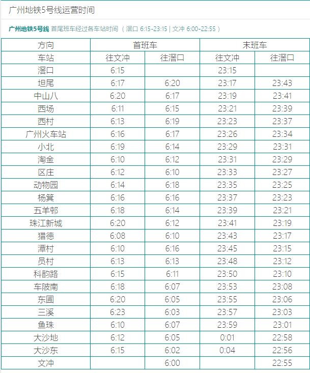 广州地铁末班车时间表首班车时间表