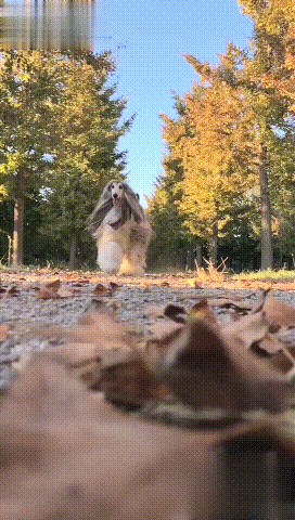 走路的时候慢悠悠的,一步一步都很稳,就像在走T台,那股子高贵劲儿,一下子就能把它和别的狗区分开,好像它是从童话里走出来的一样。
