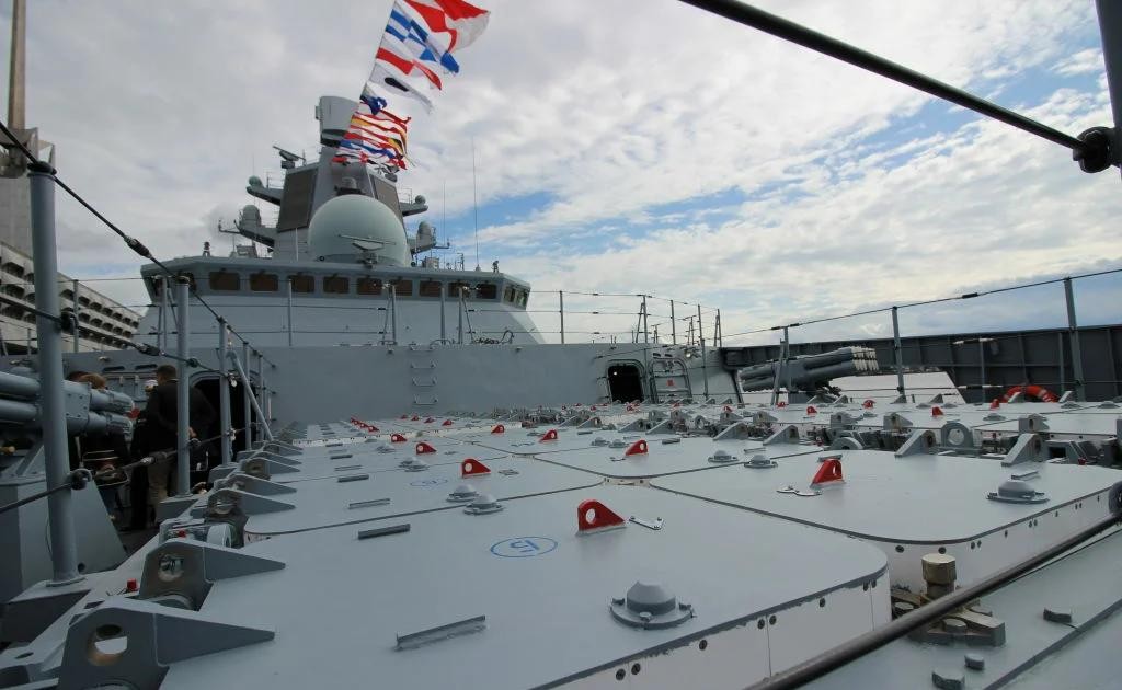 - 对空导弹:32单元的“鲁德特”垂直发射系统,这是S400防空系统的海军版。每个发射桶内可以装备一枚48N6系列远程防空导弹、或者9M96E1/E2系列中程防空导弹,又或者装近程的9M100短程防空导弹则可以实现1坑4弹,实现远、中、近多层开火拦截,提高拦截效率。