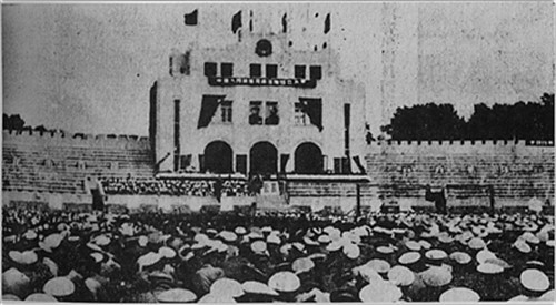 1950年10月10日,海军青岛基地在青岛汇泉体育场召开成立大会