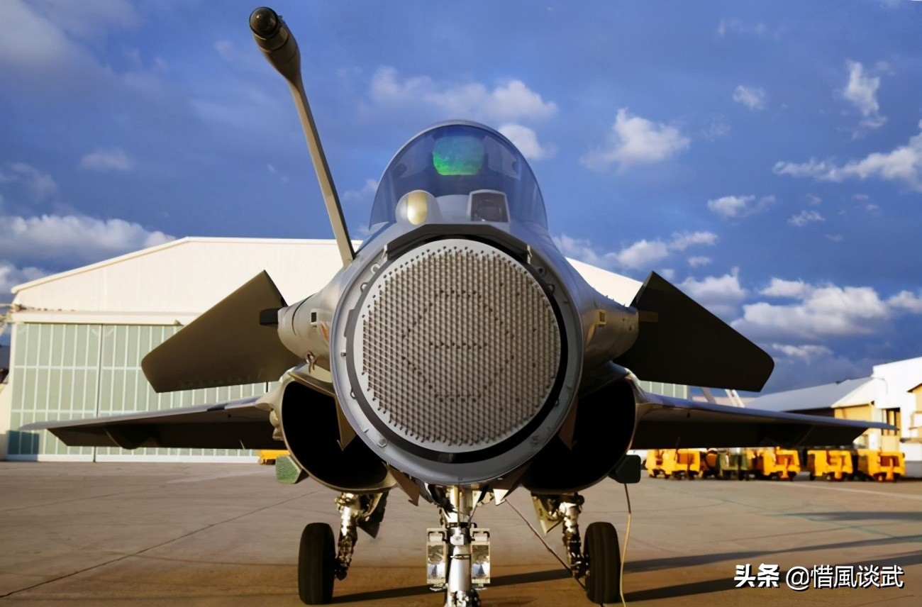 阵风战机装配的RBE2-AA有源相控阵雷达,雷达口径550mm,T/R组件800-850个,探测5㎡空中目标时,最大发现距离约110km。