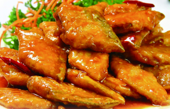 红烧带鱼是用带鱼制作的一道家常菜。鱼肉嫩体肥、味道鲜美,除了中间的大骨外,鱼身便无细刺,红烧带鱼肉质细嫩,枣红色,咸甜可口。此菜色酱红光亮,鱼肉细腻鲜嫩,口味咸中带甜。