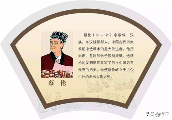 然后把纸浆渗水制成浆液,用捞纸器捞浆,使纸浆在捞纸器上交织成薄片状的湿纸。最后把湿纸贴在墙上晒干揭下就成为了纸张。为纪念蔡伦的功绩,后人把这种纸叫作“蔡侯纸”。