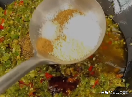 下面起锅倒入和辣椒等量的菜籽油,先放入葱段姜片炸香,再放入大料炸出香味,然后捞出料渣,放蒜蓉,姜末炸香,蒜蓉炸微黄就可以了。然后放入打碎的辣椒,小火翻炒个七八分钟,把辣椒炒熟炒透,接着放入蚝油,生抽,味精,鸡精,盐, 十三香,花椒面,继续翻炒两分钟左右,让调料化开,这个香辣开胃的辣椒酱就做好了。
