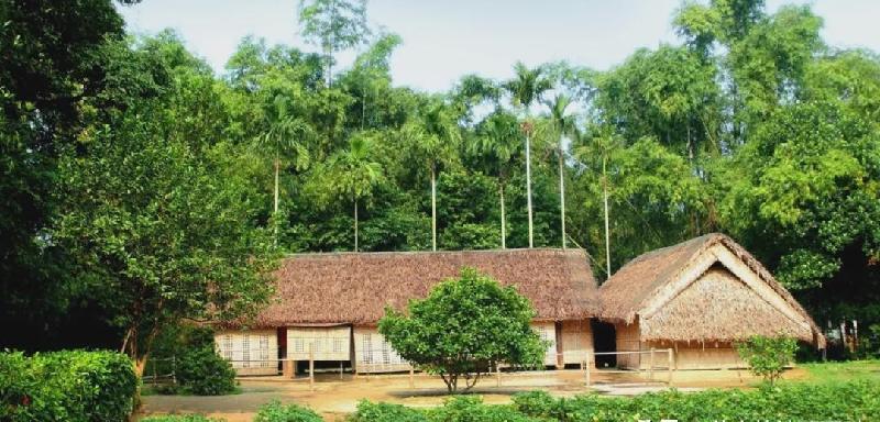 胡志明故居是一座果树葱郁院落,院内座西朝东是三间住房,住房左侧是一间厨房,住房和厨房均为木柱、板窗和茅草顶的简陋茅屋。