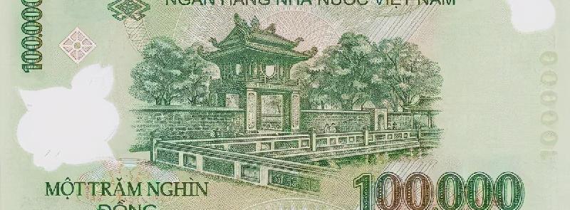 100,000盾的背面是越南国子监——河内文庙里的建筑——奎文阁。