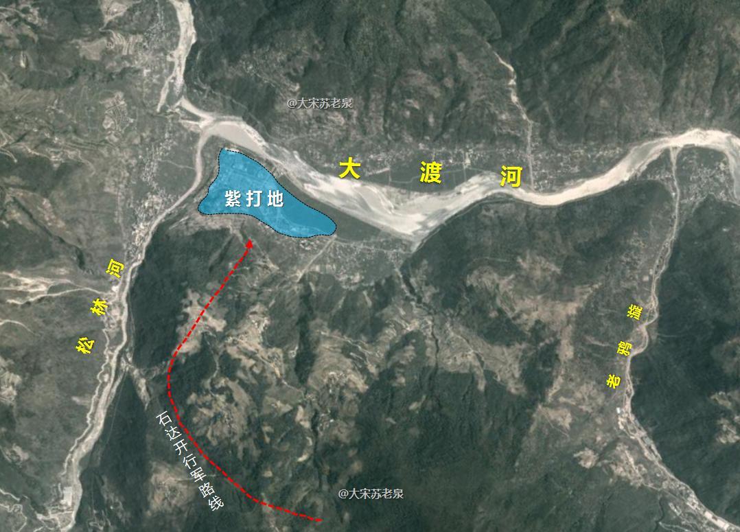 从地图可以看出,紫打地的北侧是大渡河,西边有松林河,东边还有一条名叫老鸦漩的小河,再加上背面的群山壁立,真可谓是三面环水,一面靠山,完全是一个封闭的死胡同。或者说,这根本就是一条绝路。