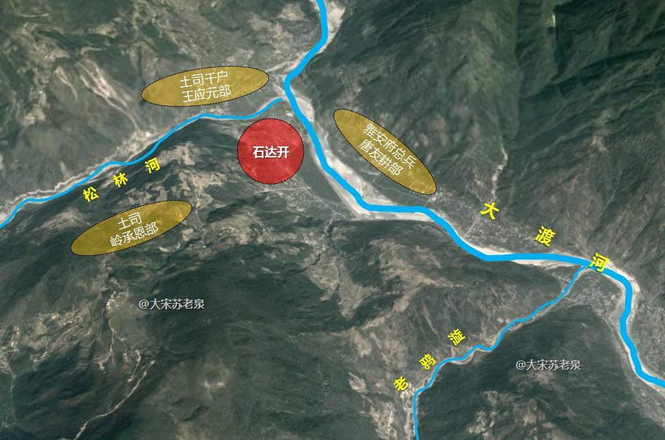 第二路,由土司千户王应元率土兵扼守在松林河的西岸,防止石达开在北渡不成的情况下,再向西渡过松林河逃窜;