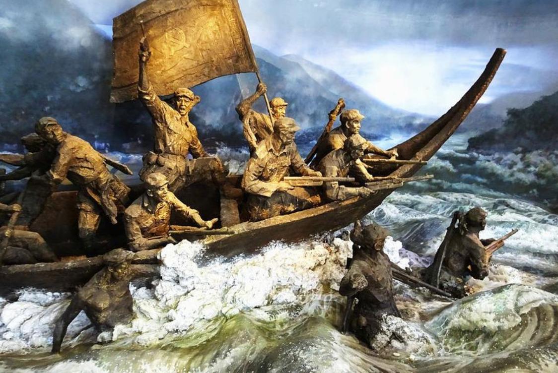 面对滔滔大渡河水,毛主席深刻的分析了石达开的失败原因,并以此作为前车之鉴,制定了红军的渡河方针: