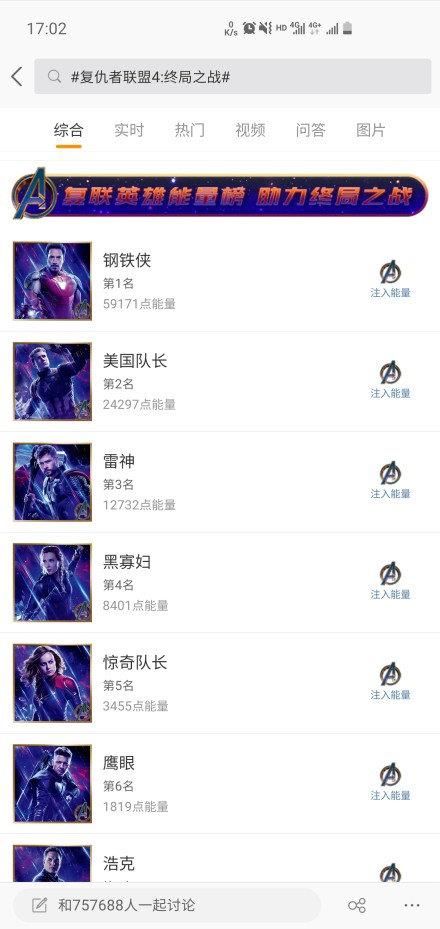 复仇者联盟图标来了!去话题 链接: 选你喜欢的英雄注入能量,就可以点亮复联英雄图标了! 搜集全了,选一个。 点赞!转发!
