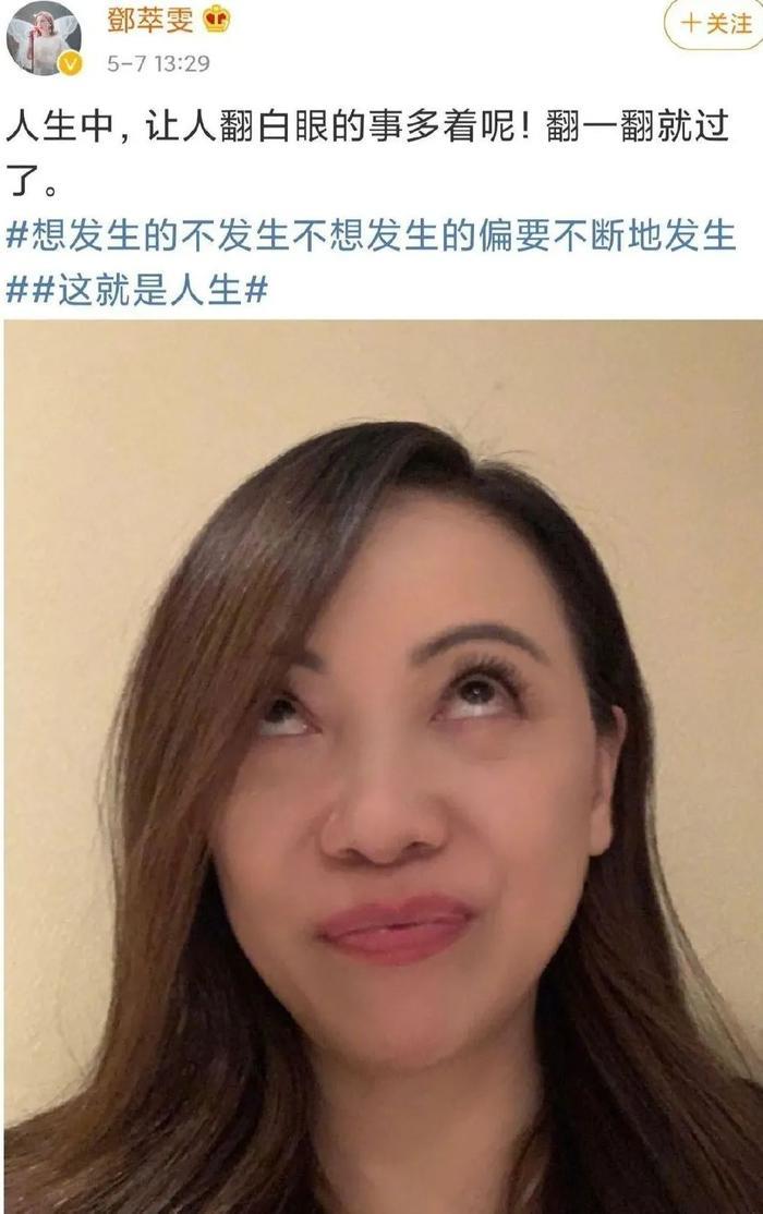后来邓萃雯在微博发白眼照疑似回应,她说自己散光,就算被人白眼也看不清。